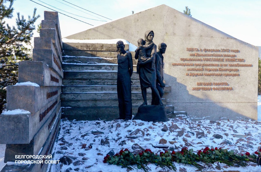 Состоялась церемония возложения цветов к памятному знаку в честь мирных жителей, зверски убитых нацистскими оккупантами в 1942 году на территории бывшего Камышитового завода.